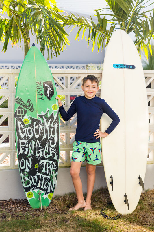 For beach boys, our swim shorts are UPF 50+, so he'll be protected from the sun's harmful rays all day long. Matched with a long sleeve rashie, he'll avoid sunburns like a pro!